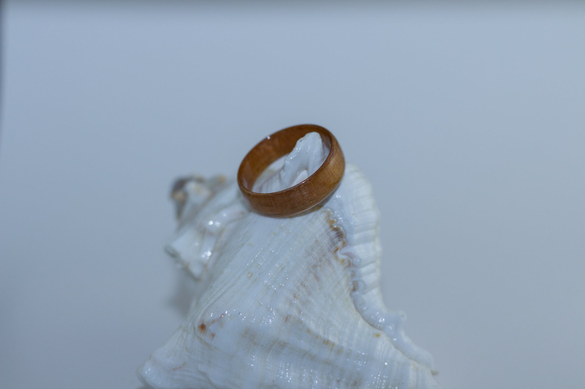 Crafted from figured Cherry wood, this ring showcases the wood’s natural grain and warm, golden-red tones.